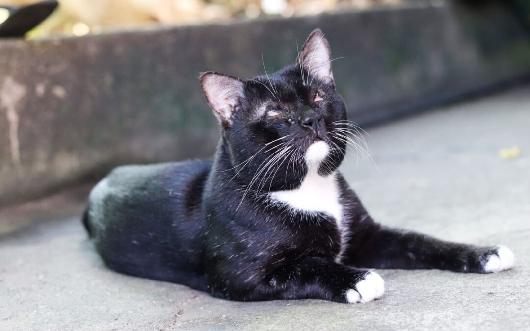 Rescued Andy as about a month old baby from a road in Marawila Srilanka in 2019. He was born without eyes, but with love, kindness and safety he has now grown up to be a beautiful, active, mischievous cat.