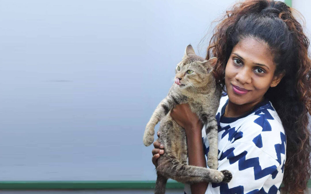 Rasha came to me from Kataragama Srilanka . As a kitten she has been attacked by dogs, causing her to be paralysed from the hip and makng her hind legs to protrude forward and made immobile. Desite these disabilities, Rasha was lucky enough to find me, and a home with love and care.